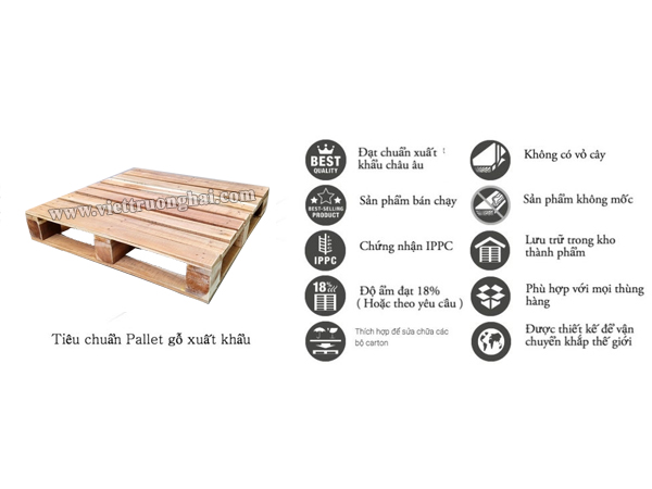Đối với riêng pallet gỗ, khi dùng để xuất khẩu hàng hoá sang nước ngoài cần phải đạt các tiêu chuẩn sau: