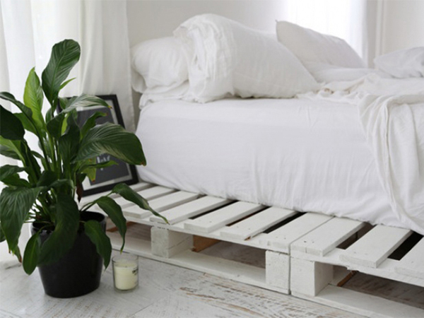 Các pallet gắn chặt vào nhau có thể tạo ra một tấm ván giường mộc mạc với chi phí thấp. Nhưng trên hết, chiếc giường kiểu này đem lại không khí phóng khoáng, đầy thư giãn.