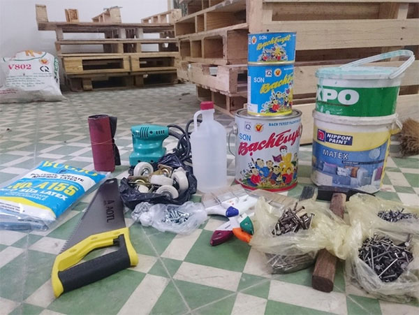 - Giấy nhám để chà sạch bề mặt pallet.